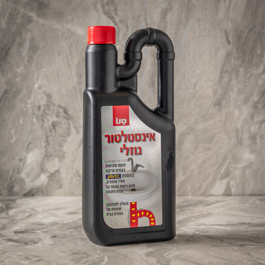 סנו אינסטלטור נוזלי, פותח סתימות בקלות בצנרת הניקוז, בתוספת ז'אוול, מסיר שומנים, מונע ריחות ושומר על צנרת פתוחה