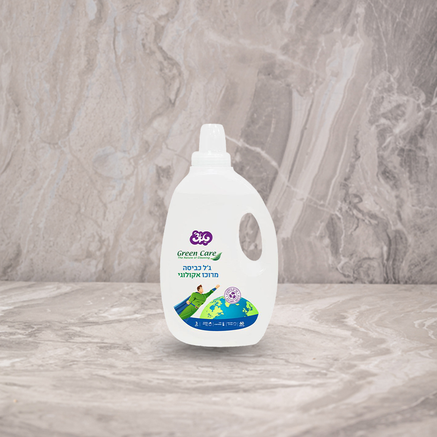 ג’ל כביסה אקולוגי מרוכז ומבושם, מכיל פעילי שטח ממקור צמחי, פריק ביולוגית ומתאים לשימוש במי השטיפה כ"מים אפורים", מתאים לכל סוגי הבדים ולכל הטמפרטורות.