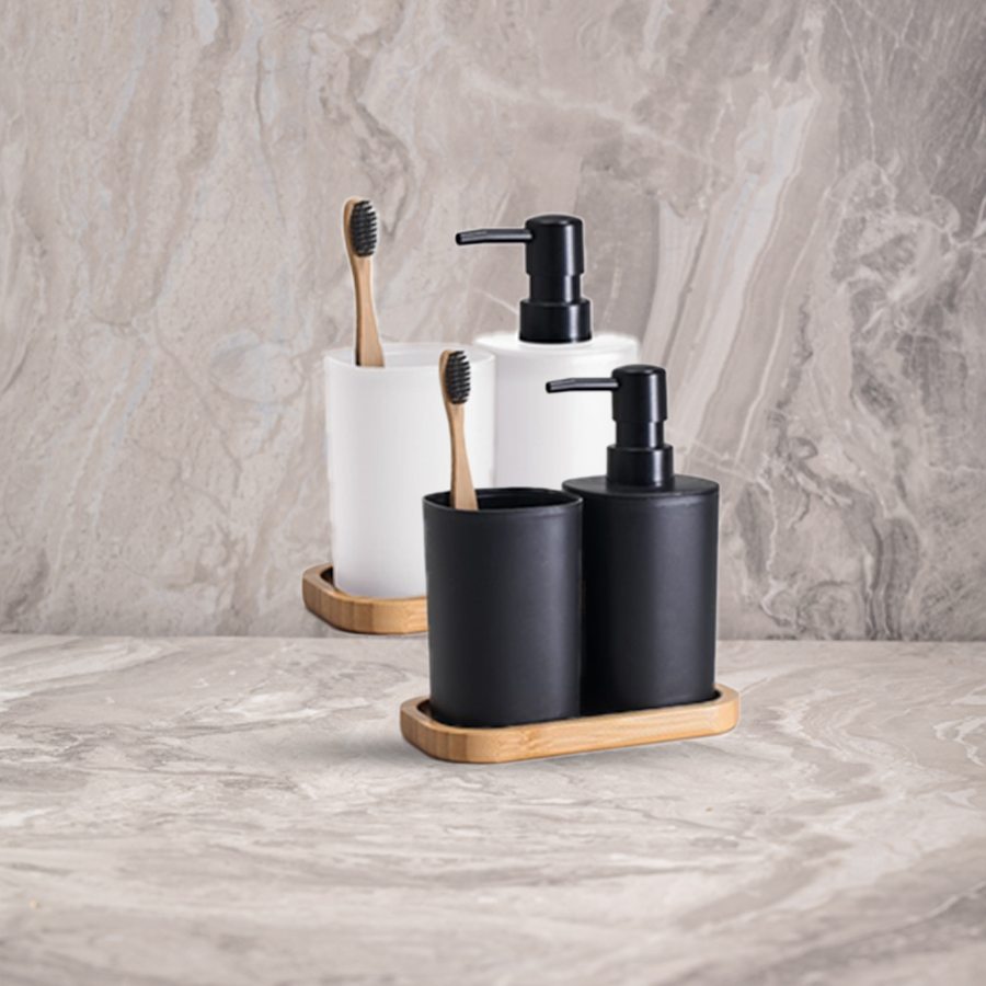 סט דיספנסר 3 חלקים בשילוב עץ