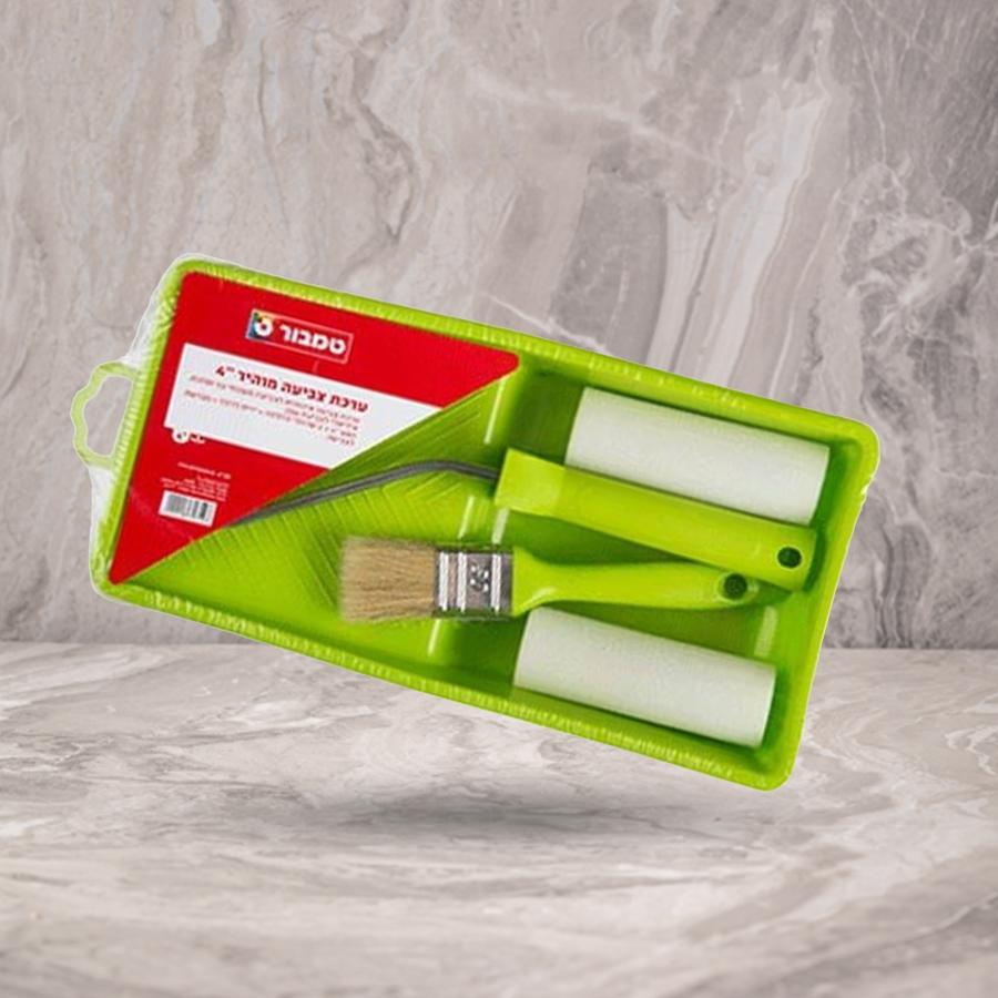 הסט כולל: מגש 4" + 2 שרוולי החלפה + ידית רולר + מברשת